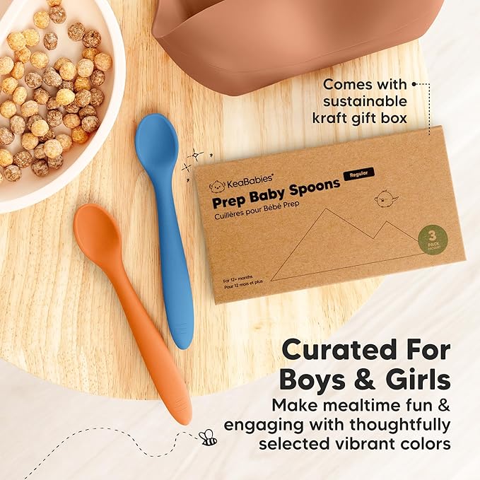 - Safer Silicone - KeaBabies 3-Pack Prep Silicone Baby Spoons Set is made from 100% food-grade, BPA-free silicone. With a topple-free handle and comfort sized scoop, these toddler spoons help BLW toddlers build confidence as they learn self-feeding.