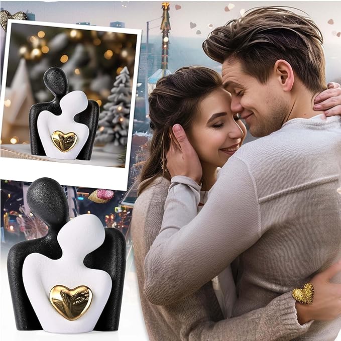 - Couples Bedroom Decor: This ceramic 'Hugging Couple Statue' embodies love and intimacy as the couple figurine shares a gaze, with a shining gold heart at the center, symbolizing a bright and precious bond. It's a mini yet impactful piece that brings a symbolic sparkle to any room, from the living room to the love office decor.