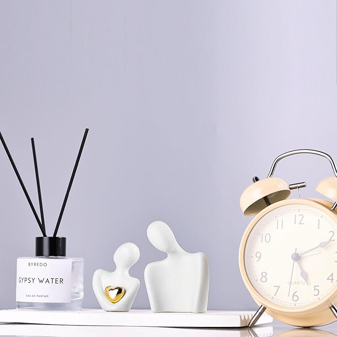 - Couples Bedroom Decor: This ceramic 'Hugging Couple Statue' embodies love and intimacy as the couple figurine shares a gaze, with a shining gold heart at the center, symbolizing a bright and precious bond. It's a mini yet impactful piece that brings a symbolic sparkle to any room, from the living room to the love office decor.