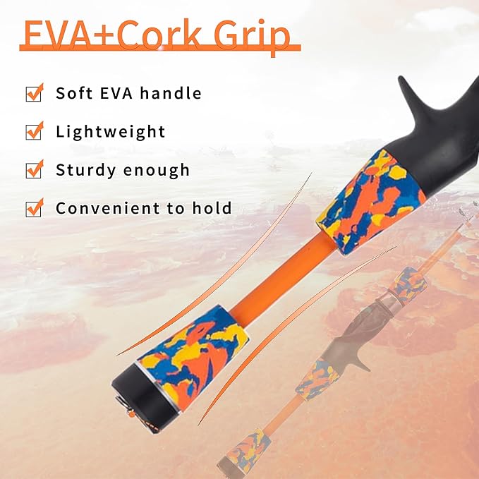 - 【Easy to Carry and Store】Our retractable kids fishing rods are foldable for easy portability and space-saving storage. A high-quality travel bag also makes it easy to carry the fishing rod and all other fishing accessories and protect it from damage. And the lengthed camouflage EVA handle is more kindly for kids. Easily fits in car trunk, boat or backpack.