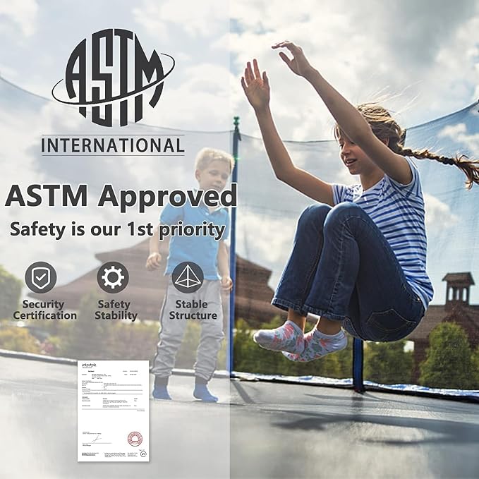 - 【Once For All Installation】This blue 16 feet outdoor trampoline features a fully galvanized frame and powder-coated legs for superior rust protection. No need to disassemble, even during rain or snow days