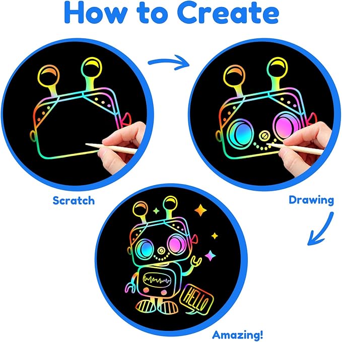 - Awesome Educational Scratch Art Toys Gift: Kids draw as they please, which can not only enhance the imagination of the brain, but also exercise the children's hand-eye coordination and color perception. It's also a communication link between parents and children, sharing their thoughts and love by drawing together! Perfect travel toys art activities gifts for 3 4 5 6 7 8 9 10 year old girls boys.