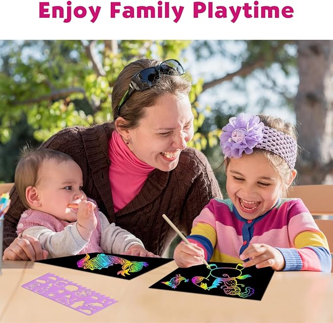 - Creative Boys & Girls Holiday Gifts - The creativity of this black scratch paper and the beautiful packaging makes it a great mother day crafts for kids bulk.Ideal gifts for kids birthday, class activity and Valentine day, Easter Basket Essentials, Halloween, Children's day, Thanksgiving, Christmas and Stocking Stuffers.