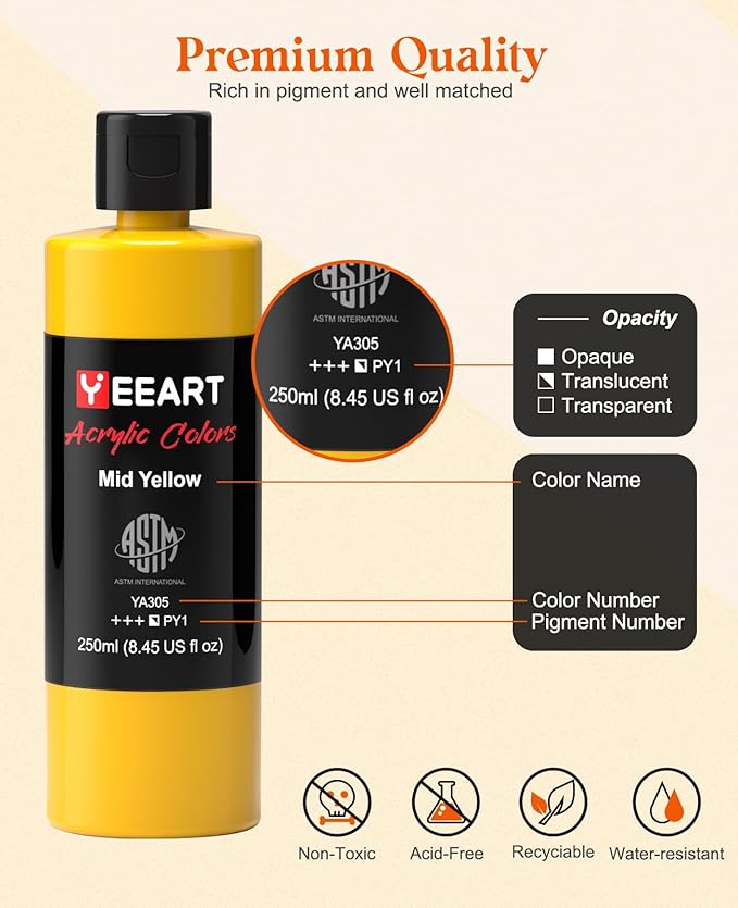 - RICH PIGMENTS: Premium acrylic paints bring bright colors, thick and creamy texture, as well as incredible consistency to painters.The thick texture and high pigments offer strong coverage and excellent ductility, They mix and blend well to come up with more colors, giving you a brilliant texture for your art. ideal for professional artists, beginers, painting lovers and kids