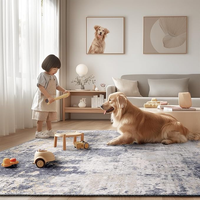 - Tides Series – Effortless style that flows with your life.This modern machine-washable non-slip rug features reinforced edges and a low-pile design that resists dirt. Its water-repellent surface makes spills easy to clean - liquids bead up for quick wiping. Simply machine wash in cold water (no bleach) to refresh. The non-slip backing keeps it securely in place. A perfect blend of function and contemporary design for active homes.