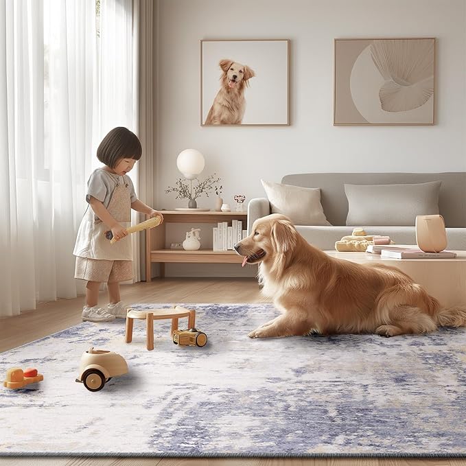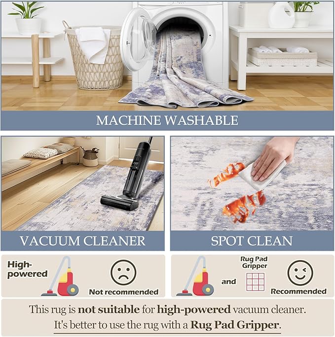 - Tides Series – Effortless style that flows with your life.This modern machine-washable non-slip rug features reinforced edges and a low-pile design that resists dirt. Its water-repellent surface makes spills easy to clean - liquids bead up for quick wiping. Simply machine wash in cold water (no bleach) to refresh. The non-slip backing keeps it securely in place. A perfect blend of function and contemporary design for active homes.