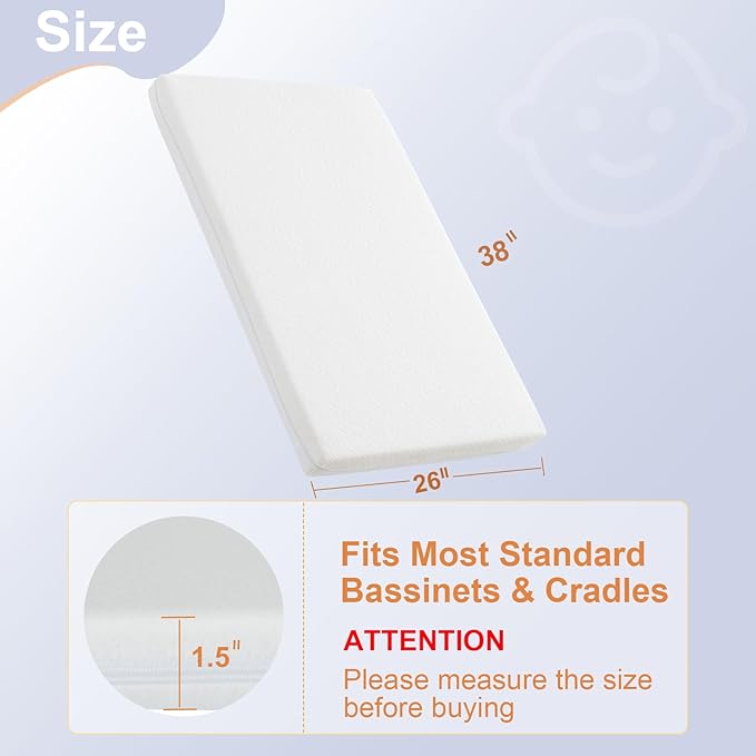 - 【Suitable for】The size of this pack and play mattress is 38x26x1.5 inch, it fits for most pack n play, playpen playard, mini cribs, or toddler bed. Please measure your mattress size carefully before purchasing.