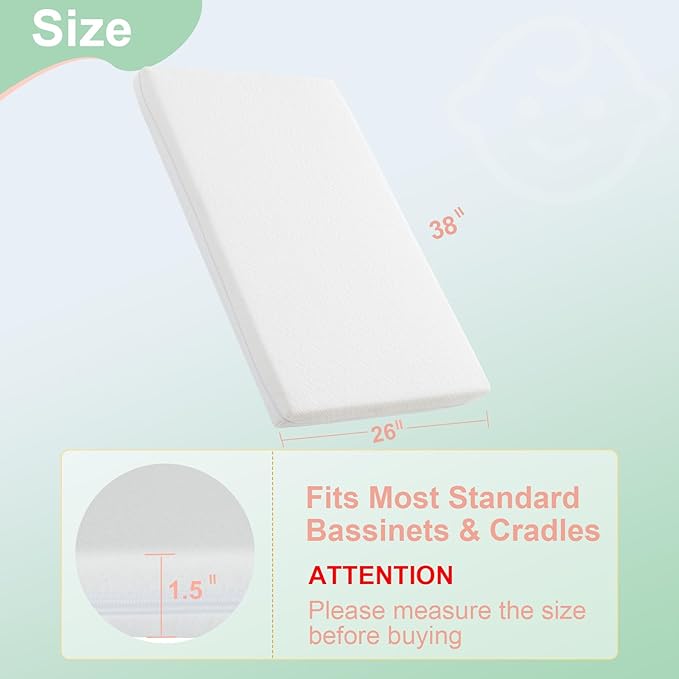 - Special Feature : 【Dual Side Firmness】The Pack and Play Mattress has dual firmness, it can provides support and comfort for babies at different stages of growth. The softer side is made of cooling gel memory form for growing toddlers, and firm side is made of high density support foam suitable for infant., 【Expand and Washing Instruction】Please wait 24-36 hours for the foam to expand after opening. Gently unzip the cover and machine wash on a low, delicate cycle, then air dry., 【Firmer Side for Infants】The firm side of our Pack and Play Mattress is made of high-density support foam for optimal firmness and ideal thickness. It won't collapse and provides enough support to prevent scoliosis and protect your baby's spinal development., 【Removable and Washable Cover】The bassinet mattress protector is made of 35% Tencel and 65% Polyester fabric. It has a zipper so you can easily remove the cover for machine washing to keep your mattress clean and fresh., 【Waterproof】Bassinet mattress cover is made of high quality TPU waterproof membrane that repels all other liquids, including fluids, perspiration, bed wetting, and stains. The waterproof feature protects the mattress. 【Dual Side Firmness】The Pack and Play Mattress has dual firmness, it can provides support and comfort… See more