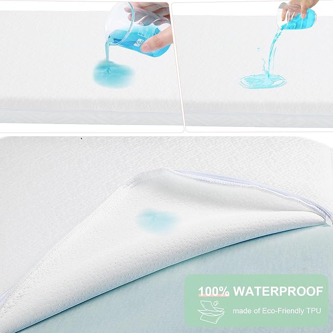 - 【Waterproof】Pack n Play Mattress cover is made of high quality TPU waterproof membrane that repels all other liquids, including fluids, perspiration, bed wetting, and stains. The waterproof feature protects the mattress.