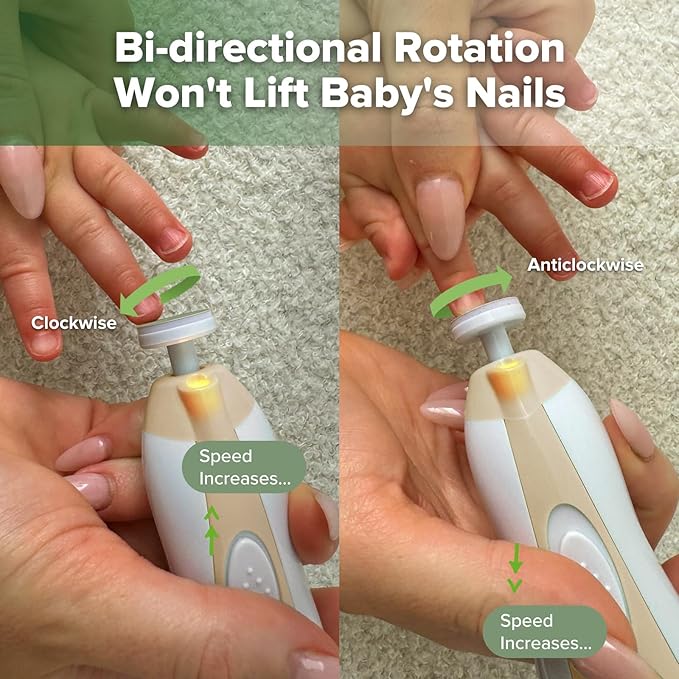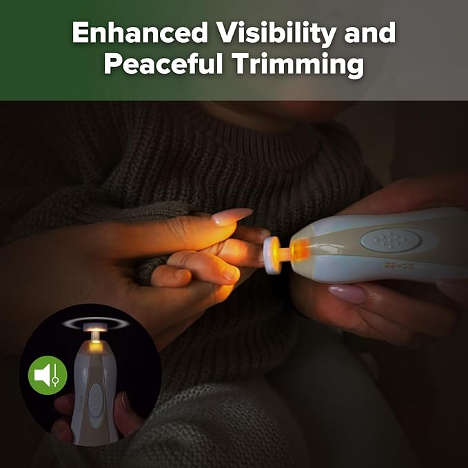 SAFE & GENTLE: Our electric nail trimmer, equipped with a pressure-activated safety system, is gentle on your baby's fingers, preventing injuries and ensuring parents' peace of mind.