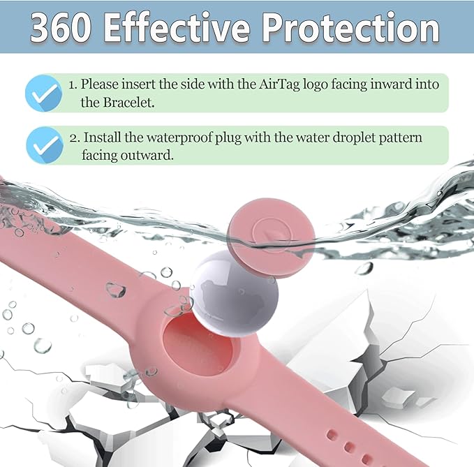 - 【Waterproof Design】There is a silicone waterproof plug on the back of the AirTag wristband, which can better completely wrap the AirTag. This design achieves better waterproof performance and is very suitable for outdoor activities such as swimming pools, beaches, and children's playgrounds (Note: It can be used for daily waterproofing, please do not soak in water for a long time)