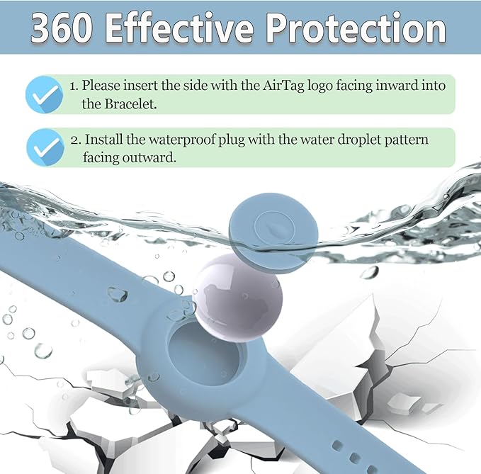 - 【Waterproof Design】There is a silicone waterproof plug on the back of the AirTag wristband, which can better completely wrap the AirTag. This design achieves better waterproof performance and is very suitable for outdoor activities such as swimming pools, beaches, and children's playgrounds (Note: It can be used for daily waterproofing, please do not soak in water for a long time)