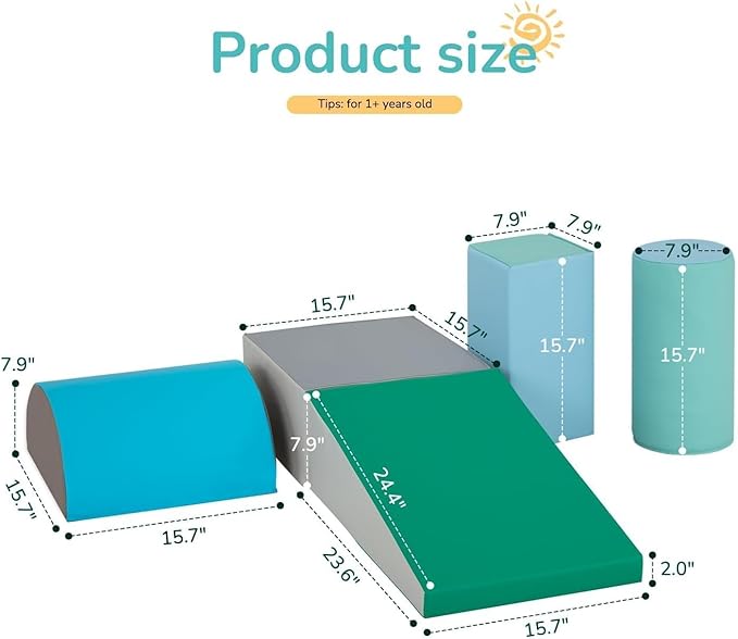 - 5-PIECE SET:The children's combined climbing toy set consists of a cylinder, a small rectangle, a large rectangle, a triangle and a half moon shape. Toddlers' climbing toys can give children full play to their imagination, allowing them to stack and exchange five different shapes at will, while climbing up or down. Have more fun.