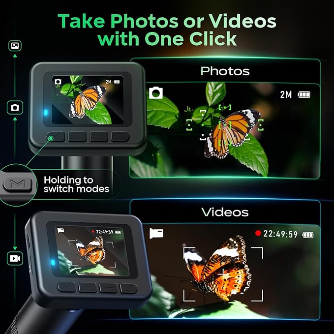 - 【Photos and Videos】DIGIEVO Digital microscope is more than a microscope. It's also a camera that supports video resolutions up to 1080P, as well as photo resolutions up to 2MP. (32G Micro SD card included)
