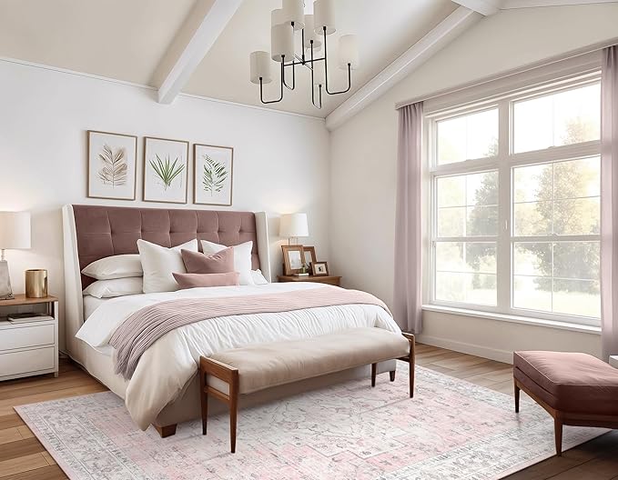 LIVEBOX Pink 6x9 Area Rug for Bedroom Girls, Boho Washable Rugs for Living Room Nursery, Non-Slip Indoor Soft Carpet Low-Pile Farmhouse Carpets for Dining Room Kids Playroom, Pink