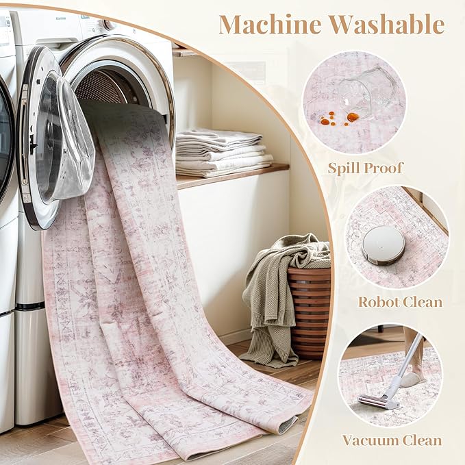 - Non-Slip & Easy Clean--Designed with a non-slip backing, our machine washable rugs are suitable for most areas. The 0.2-inch low pile prevents dust and pet hair buildup, and it's recommended for spot cleaning or commercial laundry cleaning.