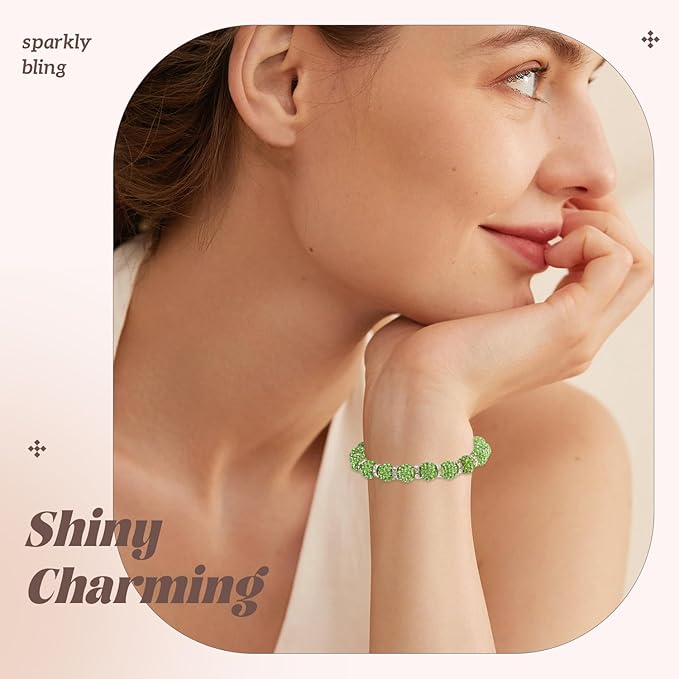 105pcs 10mm Rhinestone Beads for Jewelry Making, Light Green Shiny Round Disco Ball Beads Bulk, Sparkle Crystal Clay Christmas for Bracelet Baseball Necklace Earring Crafting and DIY
