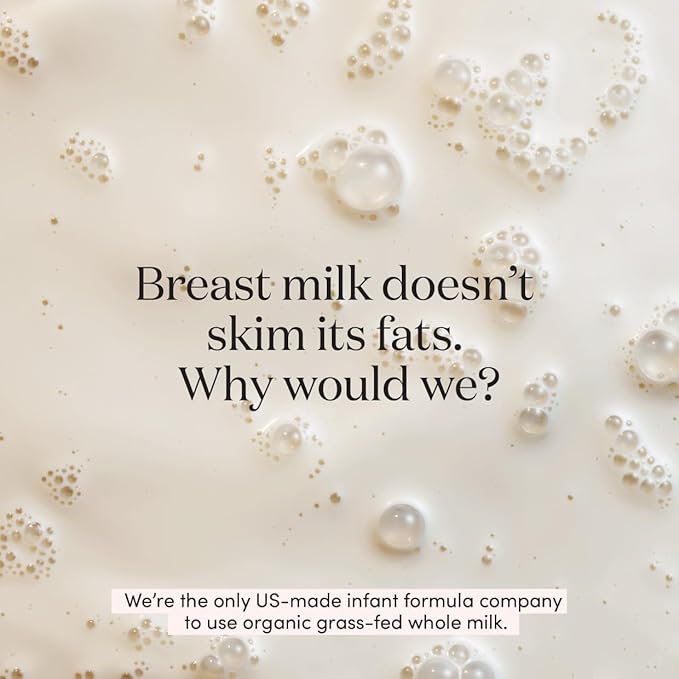 ORGANIC WHOLE MILK BASED: Whole milk baby formula made with certified-clean* ingredients, including organic, grass-fed whole milk, not skim. *Based on Clean Label Project, Purity Award certification