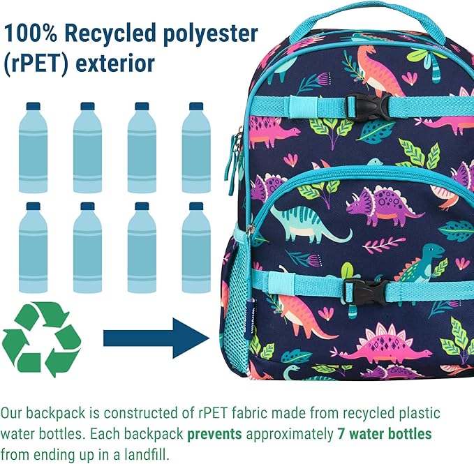 Wildkin ECO rPET 15-inch Kids Backpack – Sustainable, Padded, Adjustable – Darling Dinosaurs