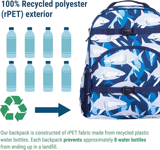 Wildkin ECO rPET 17-inch Large Backpack – Sustainable, Padded, Adjustable – Sharks