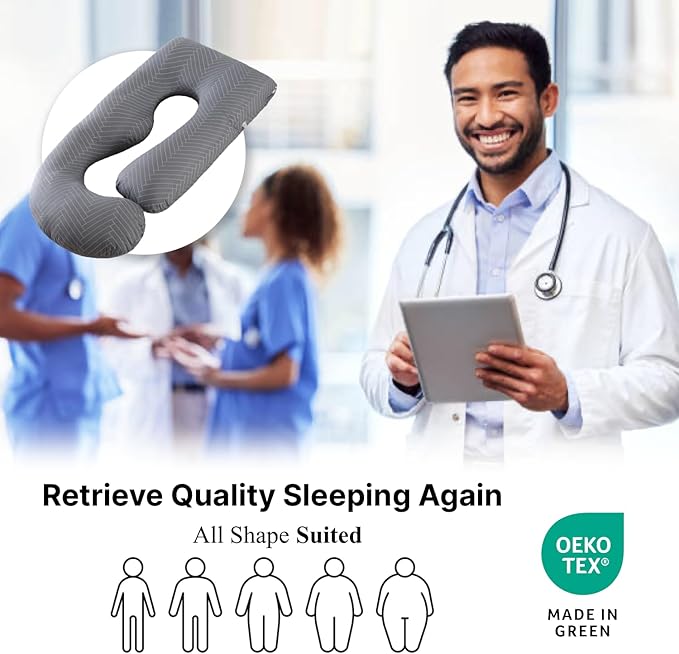 - Supportive and Comfort: The ALLOPERA maternity pillow provides full-body support that helps alleviate pressure on key areas of the body, such as the back, hips, legs, and neck. For individuals dealing with a growing belly, the pillow’s design promotes a comfortable side-sleeping position that reduces aches and pains, such as back or hip discomfort. This all-encompassing support system makes it easier to achieve restful sleep, with reduced discomfort and improved overall sleep quality.