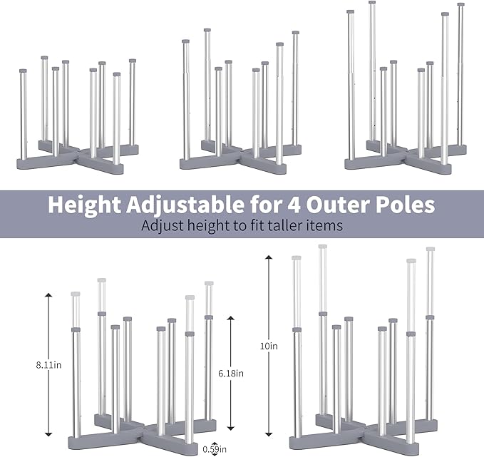 【Height Adjustable】 The bottle drying rack has 8 poles, the outer 4 poles are adjustable to two different heights, you can extend them to dry taller items.