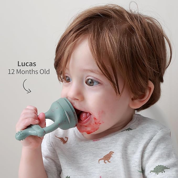 - Brighten up Teething Time - Our food feeder is super easy for babies to hold/chew and for parents to open/close like a breeze. The soft pouch only allows small pieces to pass through, and the teething part beautifully resembles a pacifier for soothing sore gums.
