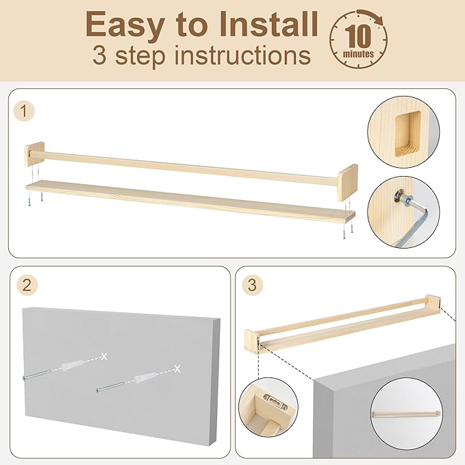 - Durable & High-Quality: Made of solid pine wood, these floating shelves are built to last. They'll provide a stylish and practical storage solution for years to come, making them an excellent addition to nursery decor and any room throughout your home