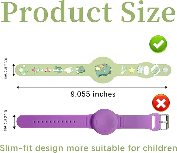- 【High-quality Materials & Cartoon Design】The wearable Air tag wristband is made of skin-friendly and soft silicone material, and the high-elastic wristband is lightweight, breathable, and washable, so it won't cause discomfort when worn all day. The cute cartoon design brings more joy to you and is the best choice to protect your Air tag.