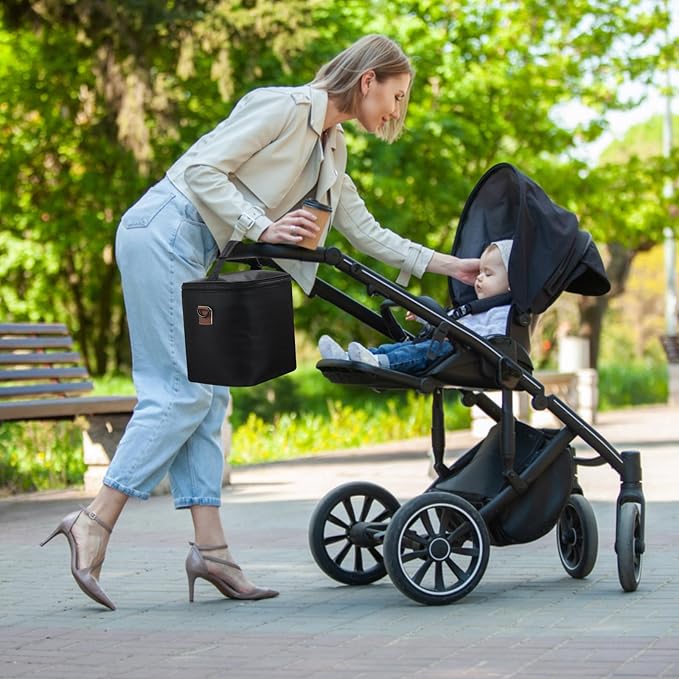 - PORTABLE WITH DETACHABLE BUCKLE: The detachable buckle design of the reusable baby bottle bag ensures you two portable carry ways, handhold or hanging on a stroller, together with soft nylon handle, let you carry the bottle bag effortlessly and comfortably.