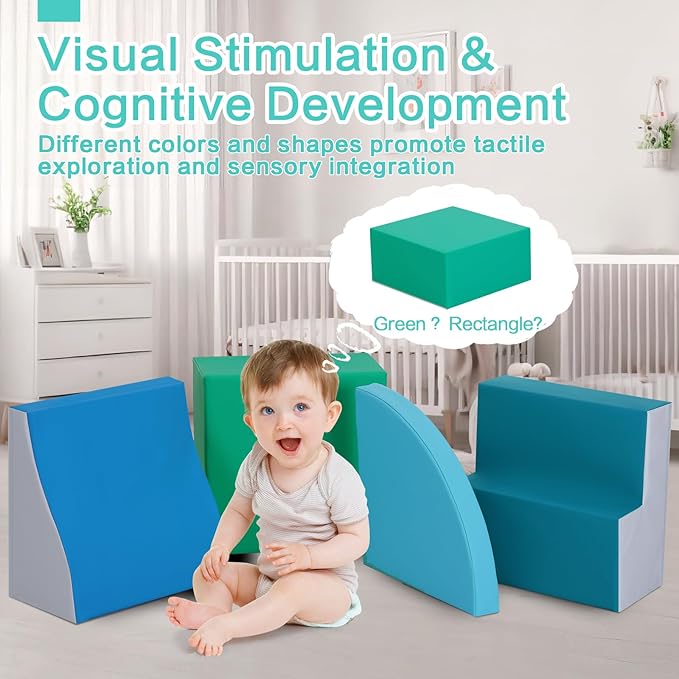 - Safe Play: TODIBY 4-piece children's climbing toys provide your children with fun and safe playtime. They can climb, crawl, and slide on these soft foam blocks while learning about shapes, sizes, and spatial relationships