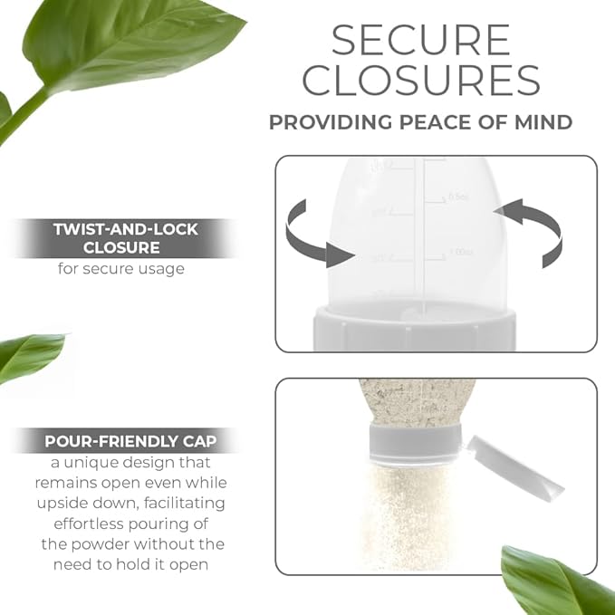 ✅[Pour-Friendly Cap] The cap features a unique design that remains open even while upside down, facilitating effortless pouring of the powder without the need to hold it open.