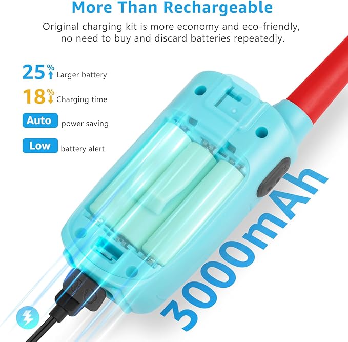 - 【Cost-Effective & Planet-Friendly】:Why keep buying batteries? With the USB rechargeable walkie talkies, say goodbye to repeatedly buying and trashing batteries. The original charging kit ensures you stay planet-friendly while saving money. The USB fast charging cable is also more convenient for charging anytime, anywhere, such as charging from a PC, car charger or power bank