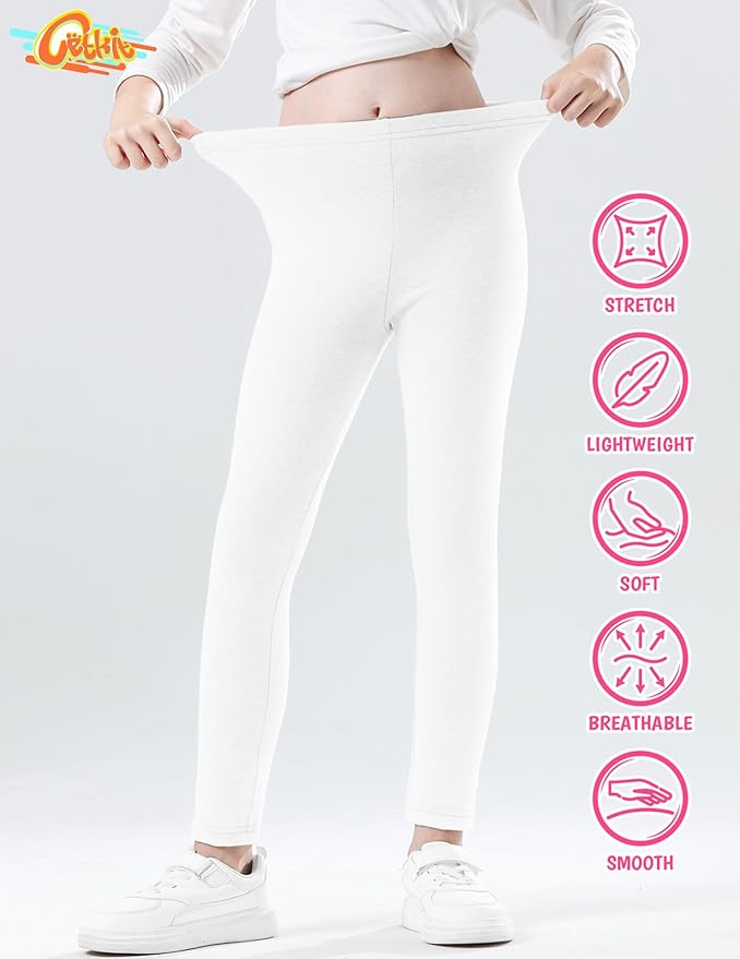 - 【Versatile Leggings】 These white leggings for girls are non-see-through, tear-resistant, and will not develop holes or fade after washing. They are ideal for playing or exercising, everyday wear, dancing, yoga, sports practice, and playing in the park. These white leggings for girls allow your child to move freely and comfortably in any situation! Our thin leggings pair well with t-shirts, sweatshirts, sneakers, and hoodies to easily create an impressive look.