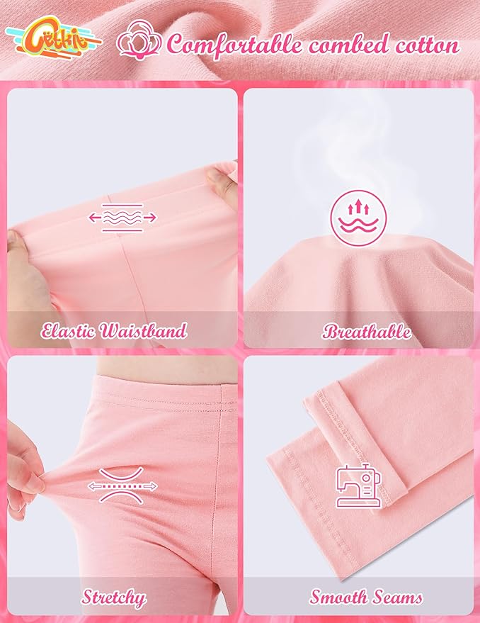 - 【High-Quality Cotton Leggings for Girls】 These girls' leggings are made of 94% polyester and 6% spandex. The fabric is stretchy, ultra-soft, and breathable, making these thin leggings very comfortable and flexible. All leggings are made from premium four-way stretch fabric, with an elastic band sewn into the waistband, which lies flat on the waist for a comfortable and good fit.