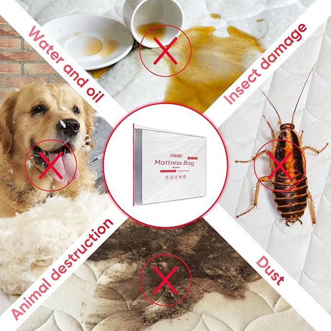 ZCHENBS® – Mattress Bags for Moving and Storage,Mattress Bag with Zippers,5 Mil Ultra-Thick Bed Bag,Waterproof,Anti-Tear,Heavy-Duty Mattress bag (Transaparent/Red, Queen-(1 Pack))