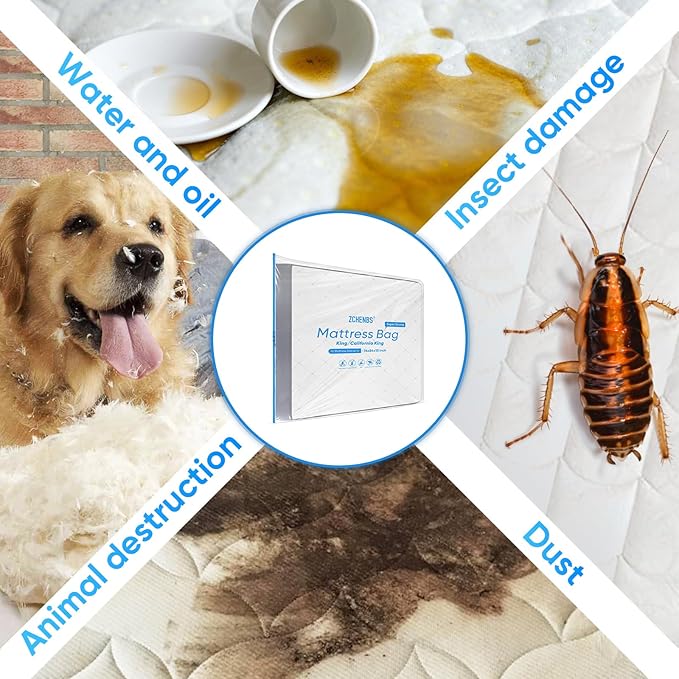 ZCHENBS® – Mattress Bags for Moving and Storage,Mattress Bag with Zippers,5 Mil Ultra-Thick Bed Bag,Waterproof,Anti-Tear,Heavy-Duty Mattress bag (Transaparent/Blue, King/California King-(2 Pack))