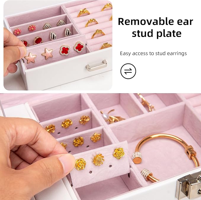 - ✅Great Gift Ideal:With exquisite workmanship and exquisite hardware,this large jewelry box will be a ideal gift for Valentine's Day, Mother’s Day, Thanksgiving Day, Christmas, birthday for your mom,girlfriend,colleague or any other important women in your life.