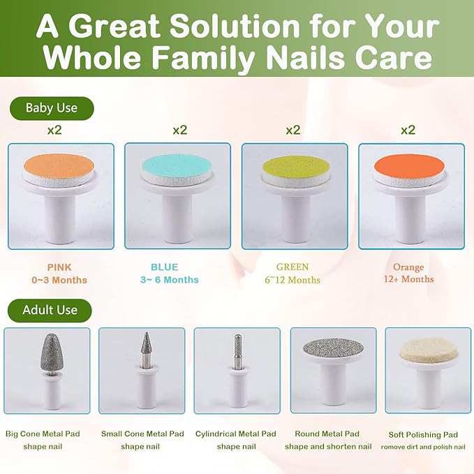 Rechargeable Baby Nail Trimmer, FANSIDI Baby Nail File Safe Baby Nail Filer Electric with 13 Replacement Pads, Trim Polish Grooming Kit for Newborn Infant Toddler or Adults Toes Fingernails Care