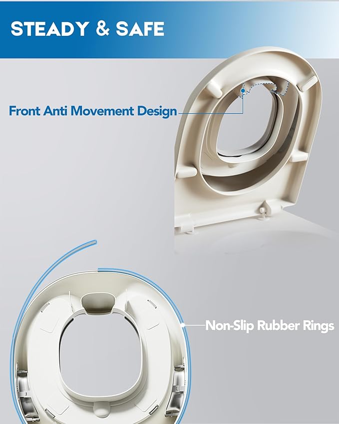 CONVENIENT DESIGN: Our Toilet Training Seat fits most standard toilets securely. It's lightweight and perfect for travel use as well.(Includes free storage hook)