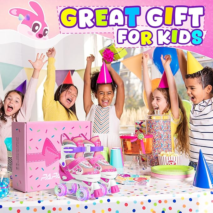 PAPAISON Adjustable Roller Skates for Girls Illuminating Wheels, Kids Toddler Rollerskates Ages 4-6 5-8 8-12