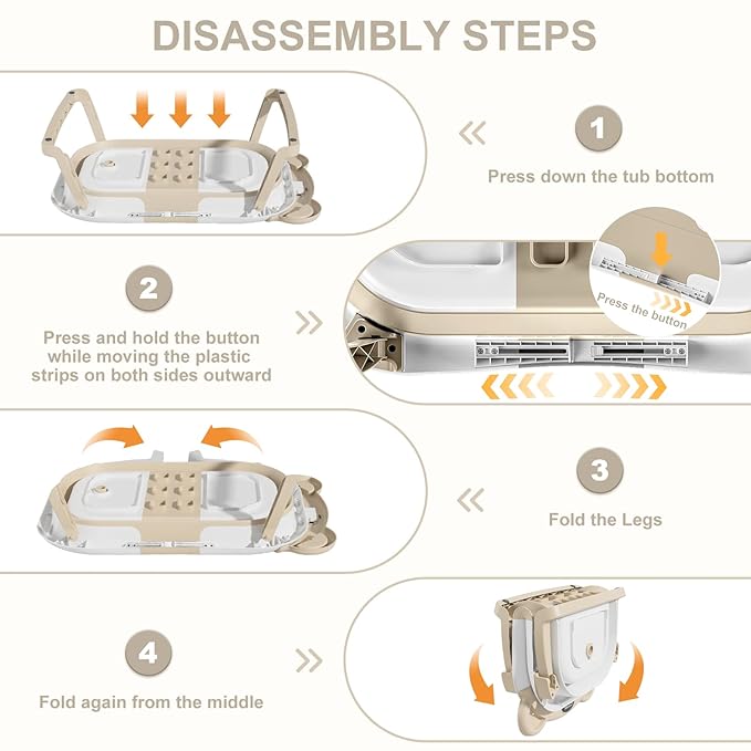 - 【Double-Fold Collapsible Design】Our upgraded baby bath tub can be effortlessly folded in just two steps to a thickness of under 4 inches. It even folds in half, enabling convenient storage in any corner, making it a space-saving solution.