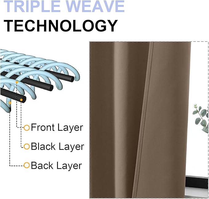 - Energy Saving: The triple-weave light-blocking fabric balances room temperature by blocking heat in summer and cold in winter. Protect your furniture, floors, and artworks from the damaging effects of sunlight, and let the brown curtains pay for themselves over time. They are perfect for living rooms, bedrooms, yards, patios, villas, parlors.