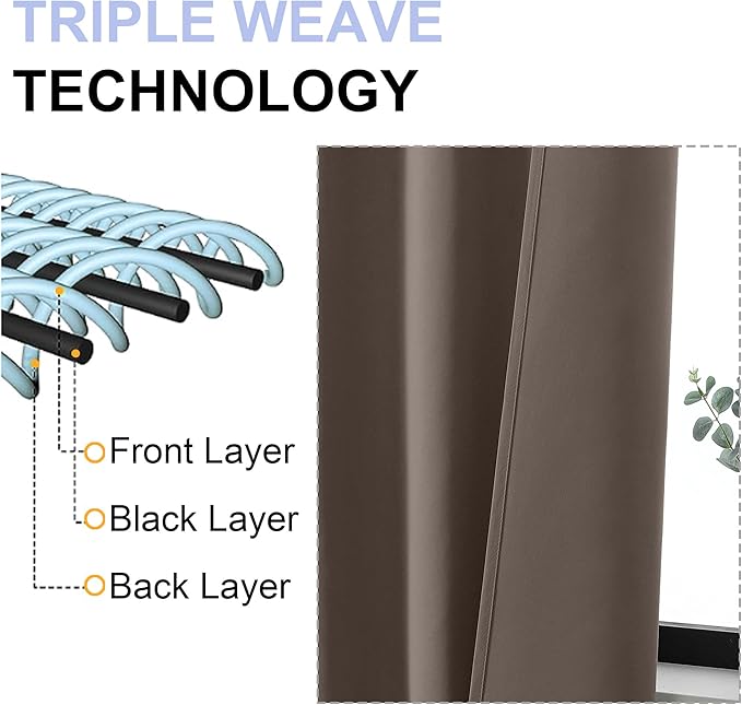 - Energy Saving: The triple-weave light-blocking fabric balances room temperature by blocking heat in summer and cold in winter. Protect your furniture, floors, and artworks from the damaging effects of sunlight, and let the brown curtains pay for themselves over time. They are perfect for living rooms, bedrooms, yards, patios, villas, parlors.
