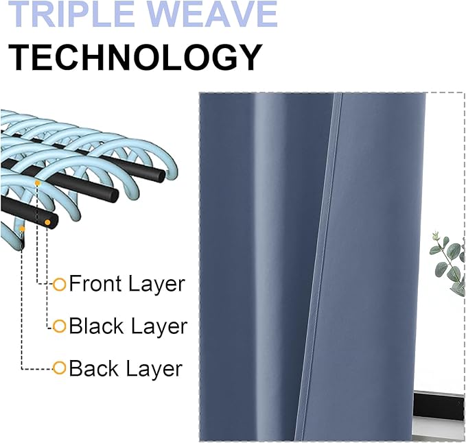 - High-Quality Materials: Crafted from high-quality polyester fiber, guarantee both stiffness and drape. This soft yet durable light-blocking fabric boasts a three-layer weave, with a middle layer of black yarn acting as an effective light-blocking panel, effectively blocking light while providing privacy. The identical colors on both sides further enhance its aesthetic appeal, adding a touch of elegance to your home.