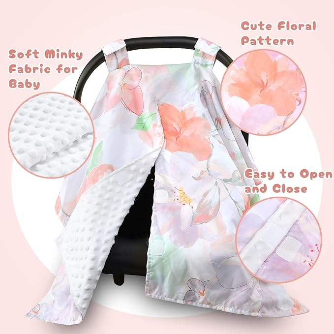 SOFT AND BREATHABLE: Made of cotton, mink and microfiber polyester. The fabric of this car seat cover baby for boys and girls is very soft and breathable, skin friendly, providing your baby with a comfortable traveling experience