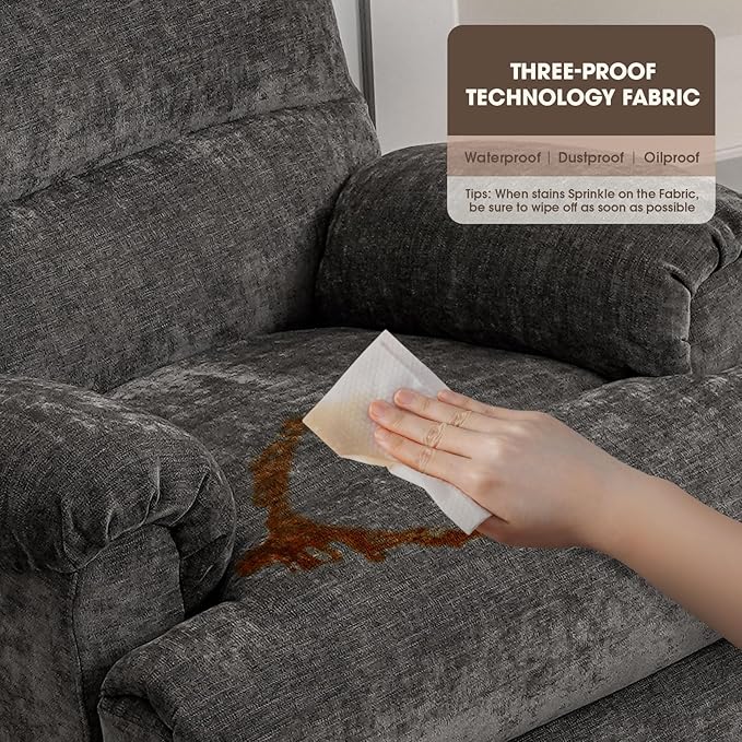 - COMFORTABLE FABRIC: The recliner features a surface treated with fabric protector, repelling liquids and dirt. It is breathable, resistant to pilling, and pet-friendly.