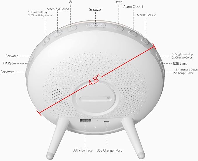 - Smart Sunrise Alarm Clock + 4 Custom Alarms (2.4GHz WiFi): Wake up naturally with gradual sunrise Simulation lighting (red to golden) that mimics real dawn, synced with soothing sounds or FM radio. Perfect for heavy sleepers & teens - no more groggy mornings