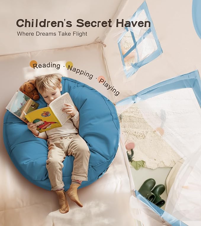 - LARGE SIZE: The play tent is 52x35x52 inches, which provides a large space for kids to play and can accommodate two children at the same time, even adults can enter! Fantasy land for role-playing and reading.