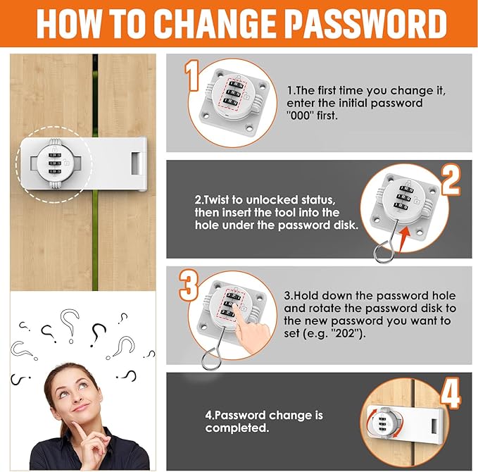 - Password Unlock: The three-digit combination lock is designed to be both secure and convenient. With up to 1000 combinations of passwords, you can set your own exclusive password according to your own preferences or habits, no need to use keys to unlock the door, eliminating the worry of lost keys and providing a certain level of security for your personal belongings